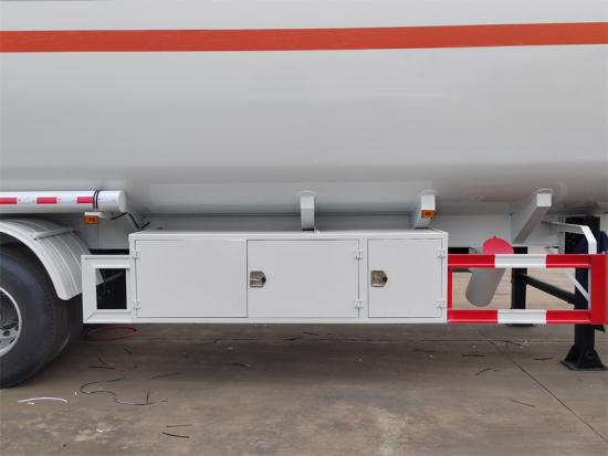 La semi-remorque citerne de 50 000 litres est équipée de quatre essieux Fuwa de 13 tonnes et d'une suspension mécanique renforcée. Un système de freinage WABCO et un réservoir d'air de 40 litres garantissent un freinage sûr même sous forte charge. Le système d'exploitation comprend quatre vannes pneumatiques API de fond et une vanne de vidange de 100 mm, ainsi que des garde-corps supérieurs rabattables et une échelle d'accès intégrée facilitant la maintenance. L'ensemble du véhicule subit un sablage rigoureux et un traitement anticorrosion, ainsi qu'un revêtement en trois couches. Équipée de pneumatiques 12R22.5 et de béquilles JOST, elle témoigne d'une conception professionnelle alliant sécurité et praticité.