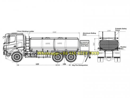 lies in its advanced dispensing system. It features two Censtar CS20D digital-controlled fuel dispensers, enabling synchronized dual-nozzle, accurately metered, and rapid refueling operations, with each dispenser achieving a flow rate of up to 80 liters per minute. Combined with a high-flow fuel pump and a 20-meter retractable refueling hose reel, this oil truck not only performs long-distance transportation but also functions as a mobile refueling station, providing efficient and convenient fuel distribution services in various remote or fixed locations.
