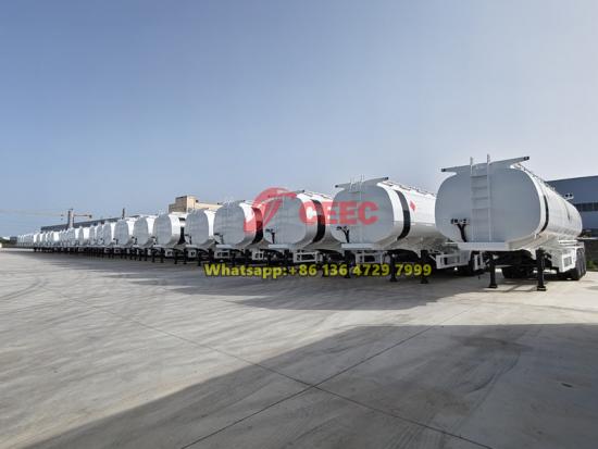 Stainless steel tank, aluminum alloy tank, BPM axles for optionLe semi-remorque citerne à carburant de la NNPC au Nigéria est un véhicule spécialisé conçu pour le transport de liquides tels que le carburant. Semi-remorque citerne de carburant de 45 000 litres de la NNPC (Nigeria) Ce camion-citerne est doté d'une cuve en acier au carbone Q235B, divisée en trois compartiments indépendants de 15 000 litres pouvant transporter simultanément différents types d'huile. Chaque compartiment est équipé de cloisons internes pour limiter efficacement les ballottements de liquide pendant le transport. Le véhicule est équipé de composants robustes, notamment trois essieux Fuwa de 13 tonnes, des pneumatiques 12R22.5 et un train d'atterrissage JOST de 28 tonnes.
