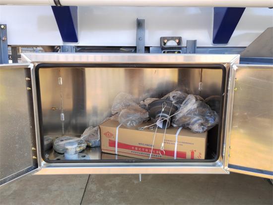 Ce camion-citerne présente des dimensions hors tout de 12 000 mm × 2 500 mm × 3 280 mm et est équipé de 3 essieux Fuwa de 13 tonnes pour une stabilité de conduite optimale. La cuve est construite en acier au carbone haute résistance Q235 de 5 mm d'épaisseur et divisée en 5 compartiments indépendants, d'une capacité de 8 000 litres chacun. Chaque compartiment est doté de cloisons internes pour une sécurité accrue et pour éviter les ballottements de liquide. Le camion-citerne est équipé d'un couvercle de trou d'homme de 500 mm avec soupape de ventilation conforme aux normes européennes, d'une vanne papillon de 4 pouces et d'une vanne de fond pneumatique en aluminium. Associé à un béquille robuste de 28 tonnes et à un système de freinage WABCO, sa conception globale allie praticité et fiabilité.